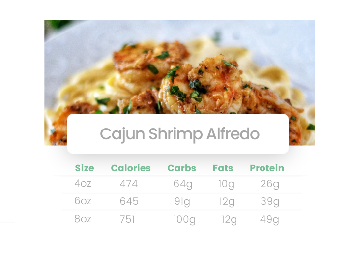 Roasted Shrimp tossed in Cajun spices and minced garlic, served over a bed of Alfredo pasta and steamed sweet peppers.