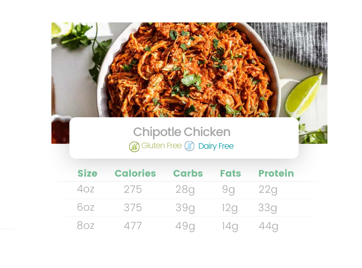 Slow simmered chicken breast marinated in chipotle seasoning. Served with roasted sweet potatoes and steamed green beans.