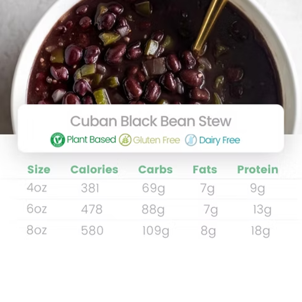 Slow cooked cuban style black beans in a sofrito base. Served with jasmine rice and sweet plantains.