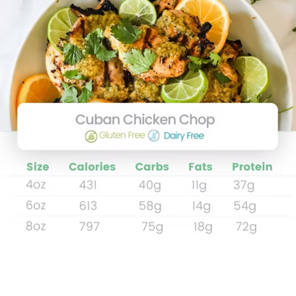 Grilled chicken breast marinated cuban style served with Spanish yellow rice and baked sweet plantains.