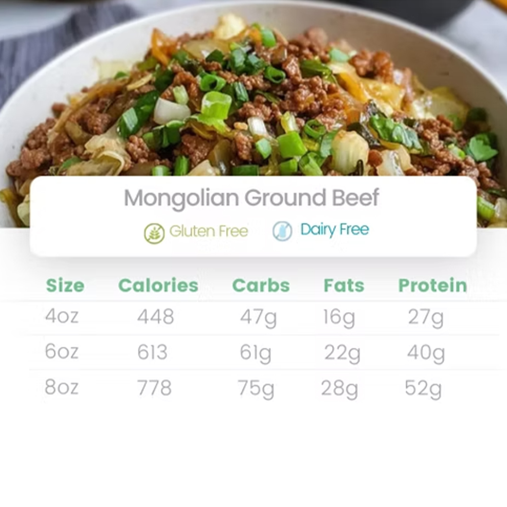 Mongolian inspired ground beef simmered with fresh garlic and ginger. Served with steamed basmati rice and sautéed asian slaw.
