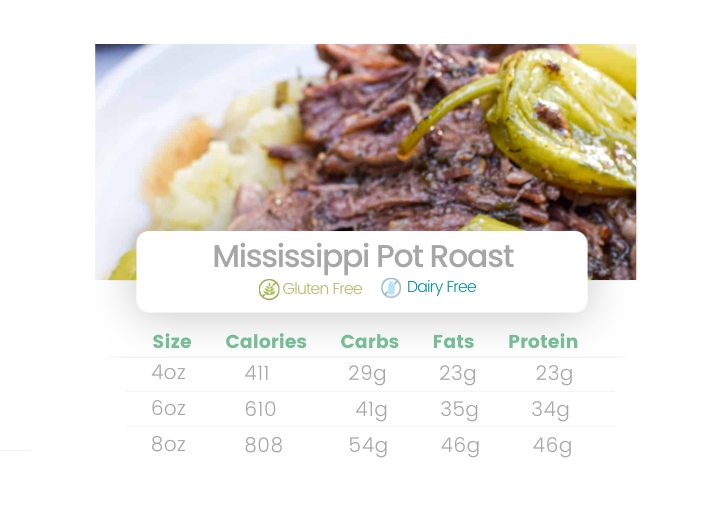 Chuck beef slow simmered in beef broth and spices. Served with homestyle mashed potatoes and steamed sweet peppers.